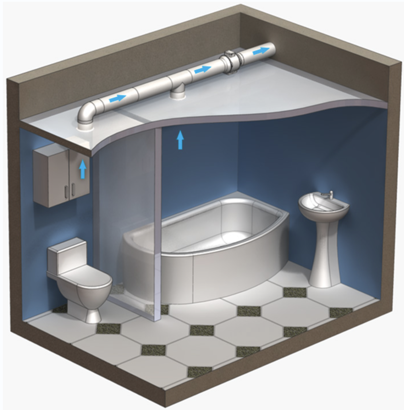 У вентилятора специально разработанная тихая крыльчатка, тчо дает возможность использовать канальный вентилтятор в ванных комнатах домов или квартир.